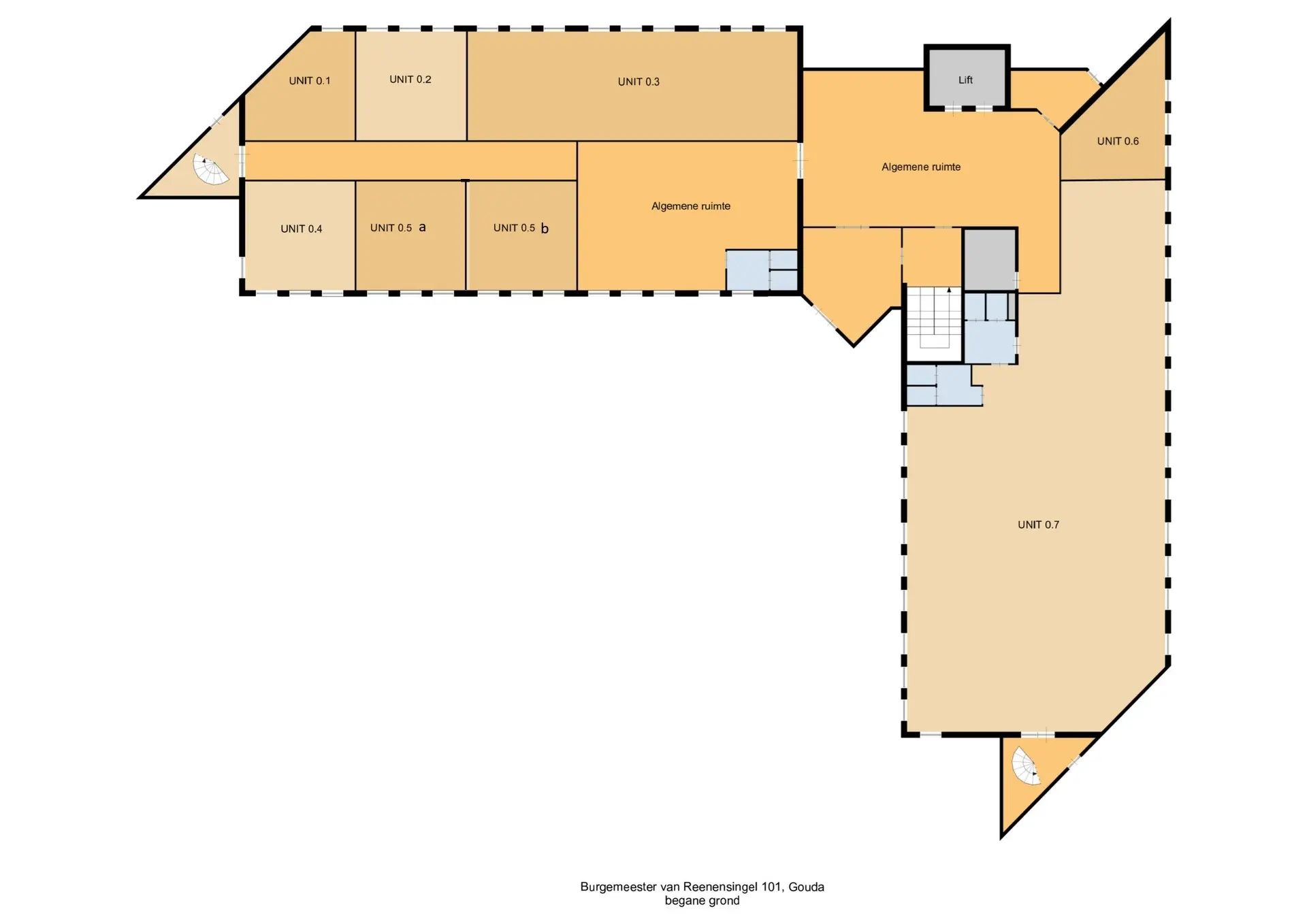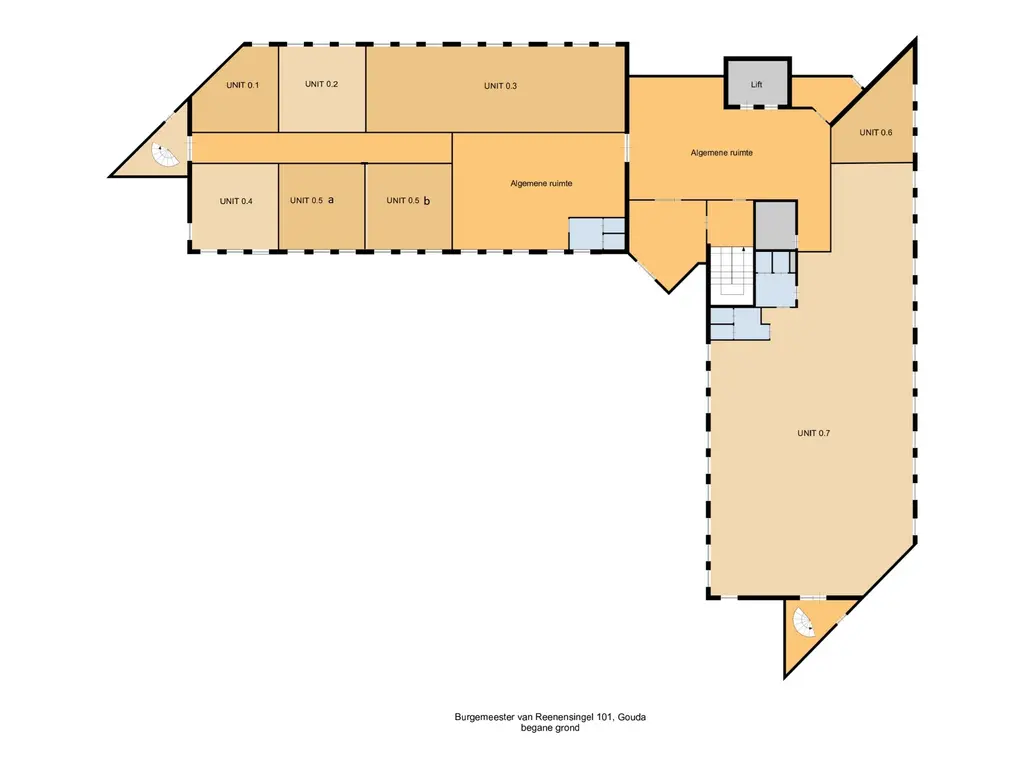 - unit 0.5 b circa 36 m² € 375,- excl. servicekosten en BTW
