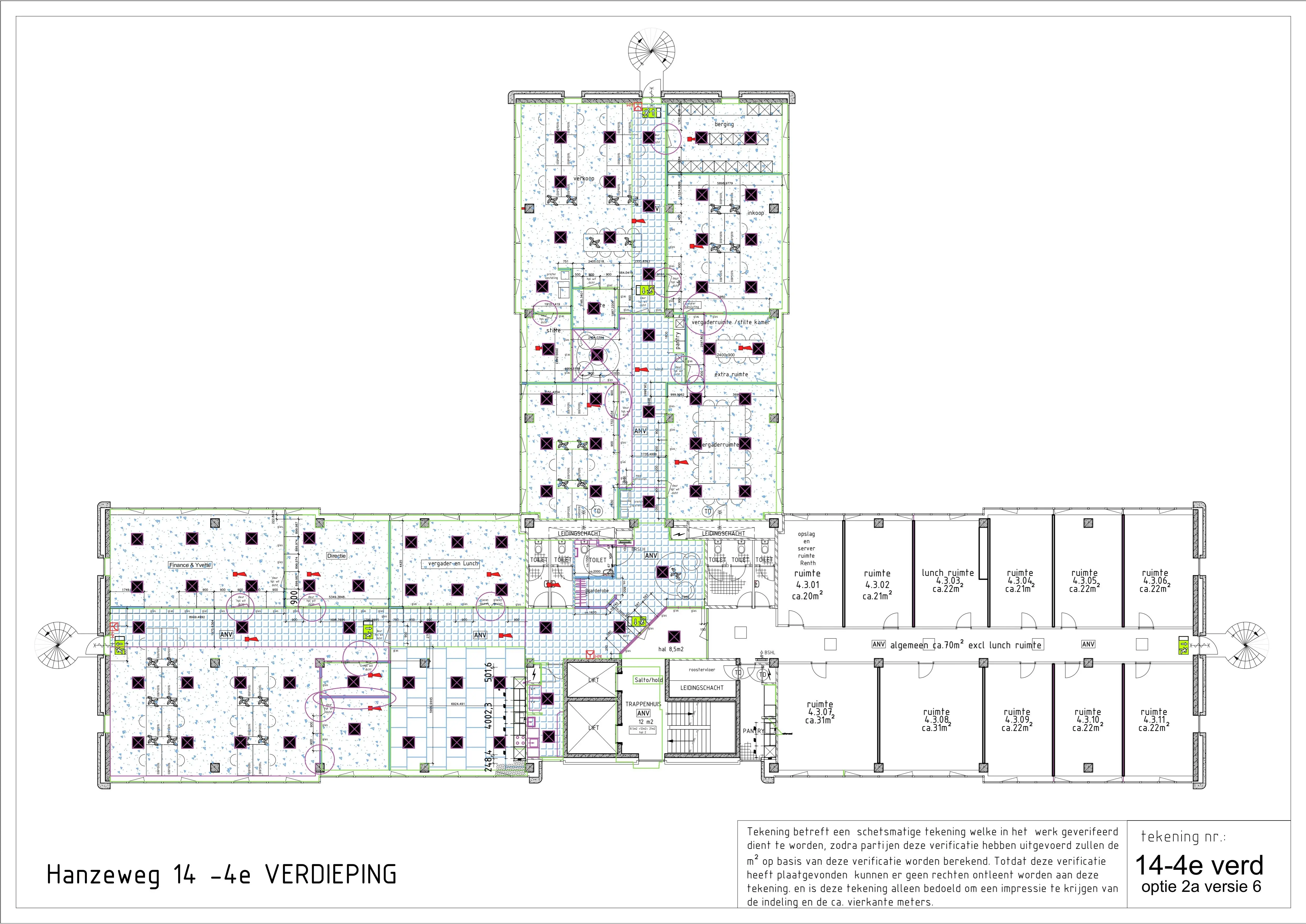 Het markante gebouw beschikt over een totale v.v.o. van 5.657 m², verdeeld over 6 bouwlagen. Elke bouwlaag heeft een oppervlakte van ca. 1.000 m² met drie vleugels. Hierdoor is er optimale indelingsvrijheid mogelijk!