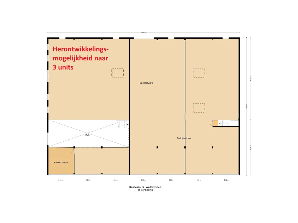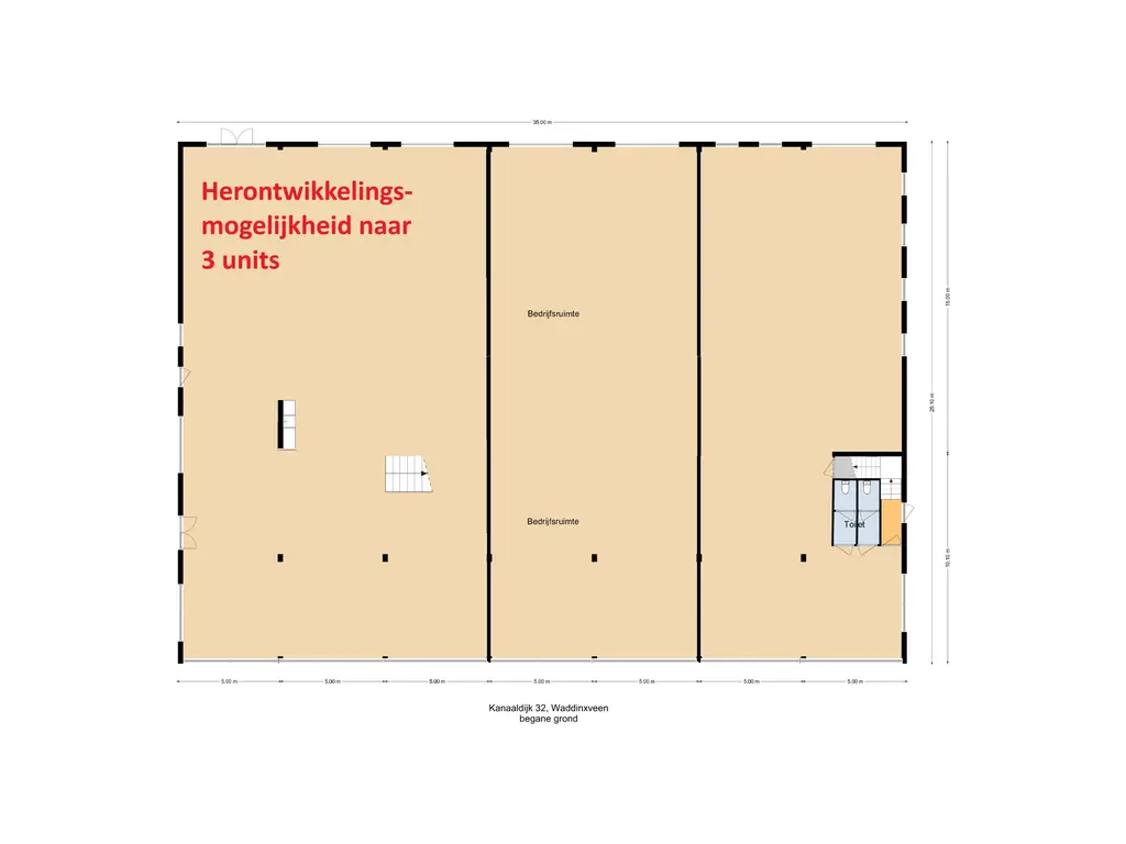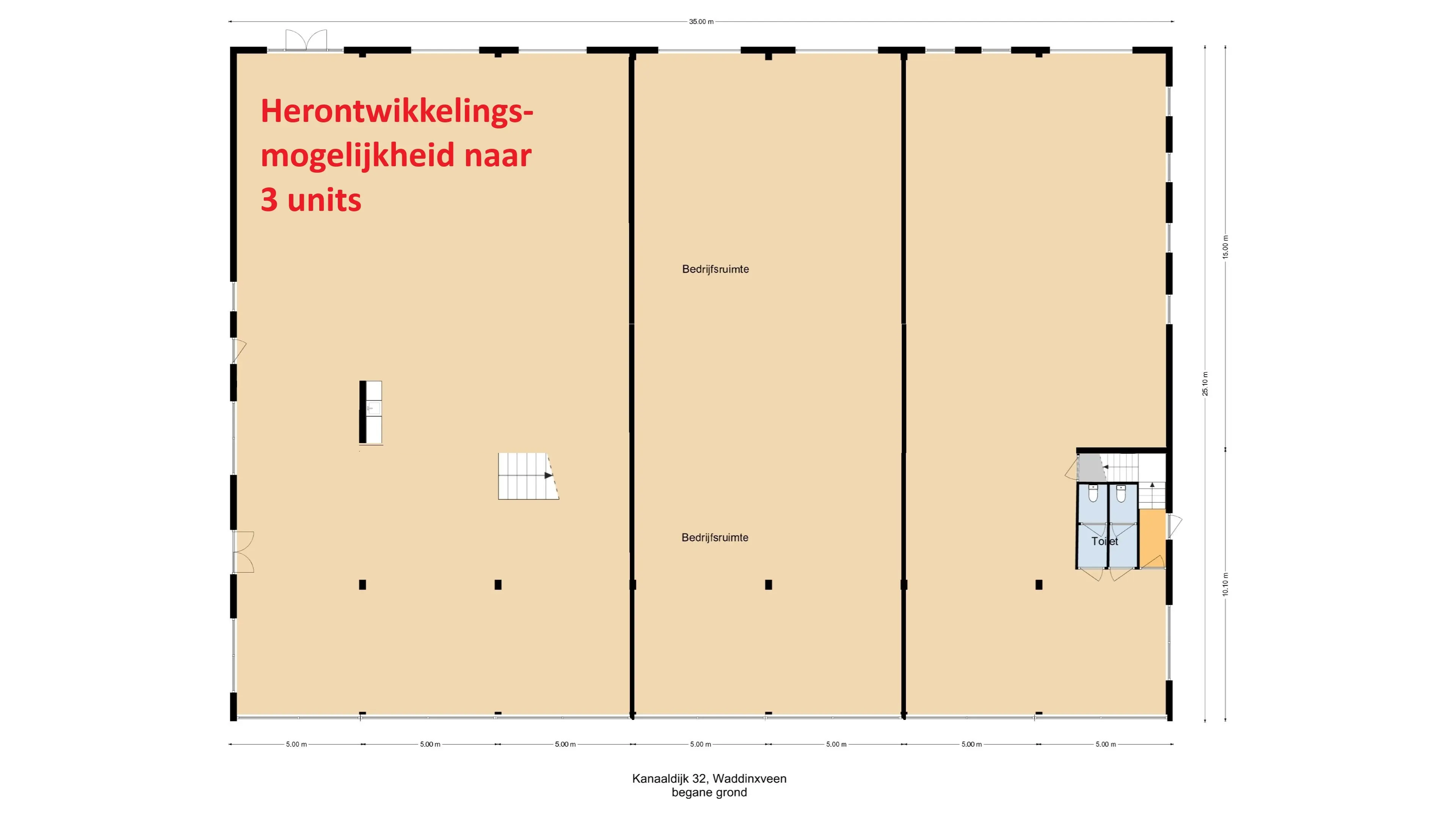 Het object kan worden herontwikkeld tot drie moderne units met twee bouwlagen en is daardoor geschikt voor verschillende soorten gebruikers en een flexibele invulling.